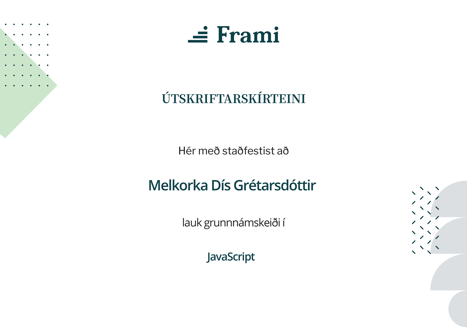Þegar þú hefur lokið við námskeiðið færðu útskriftarskírteini sem staðfestir það sem þú lærðir.