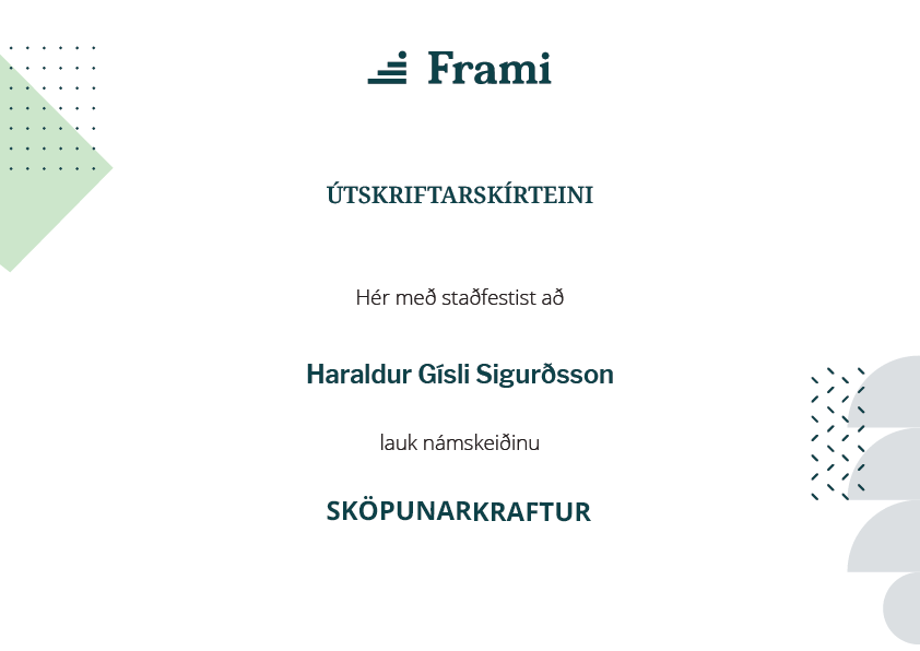 Þegar þú hefur lokið við námskeiðið færðu útskriftarskírteini sem staðfestir það sem þú lærðir.