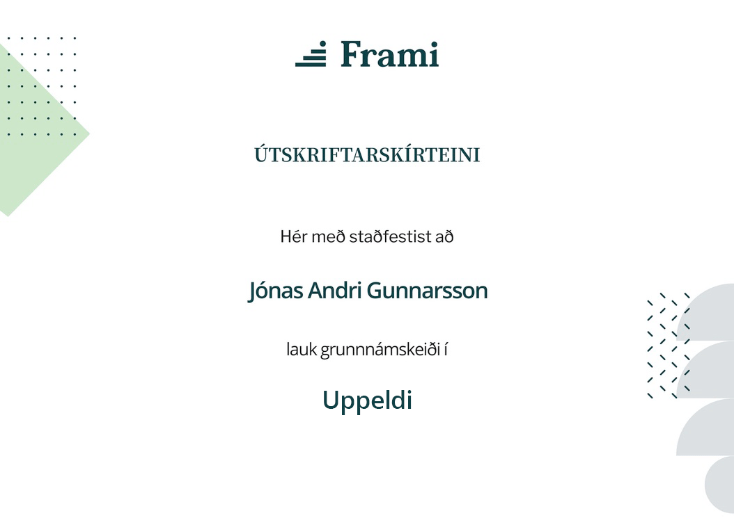 Þegar þú hefur lokið við námskeiðið færðu útskriftarskírteini sem staðfestir það sem þú lærðir.